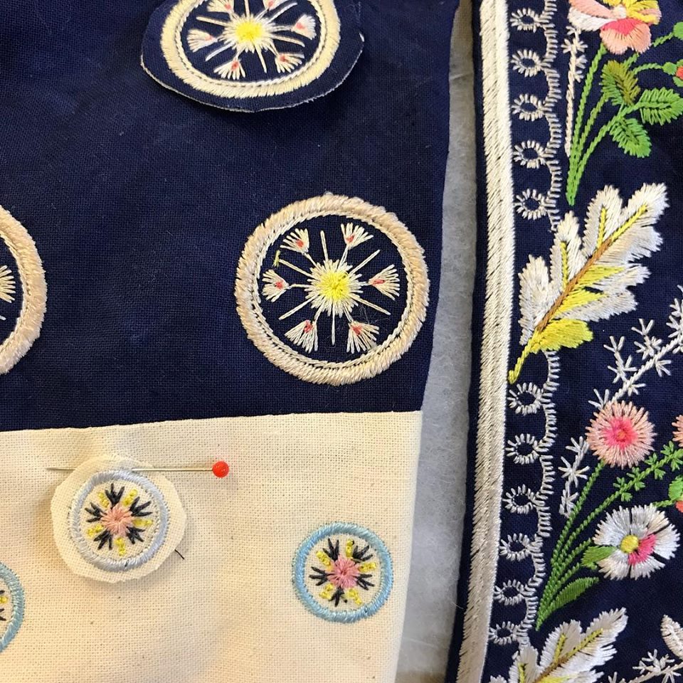 Next, I start on the flowers with the same technique as above. Once the flowers are done, all I need to do, is clean up the stitches which run along the left and ensure my repeat works. I will probably add imperfections into that line as it’s quite uneven on the real suit as well.