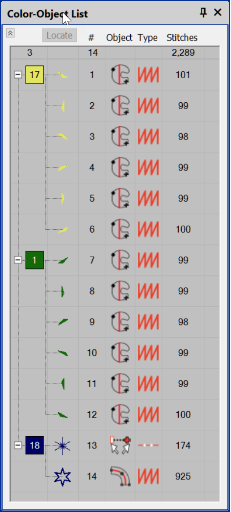 Object 14 is an Input C and also is a satin stitch.