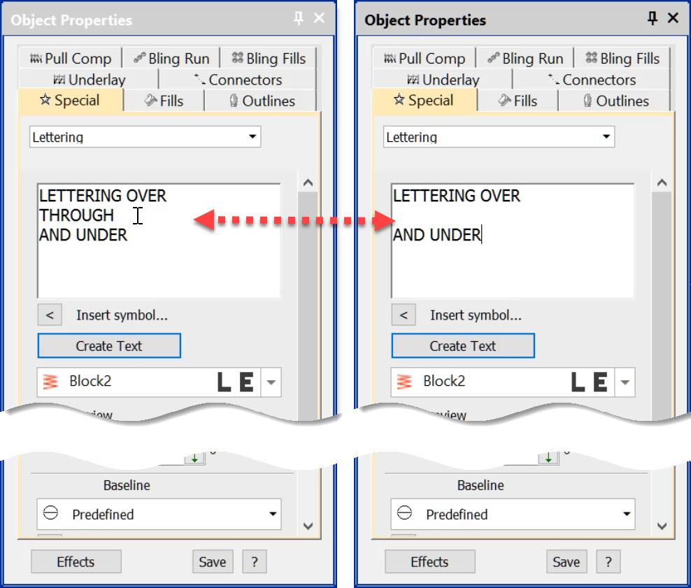 The procedure is exactly the same as for a circular baseline but involves three lines of lettering.
