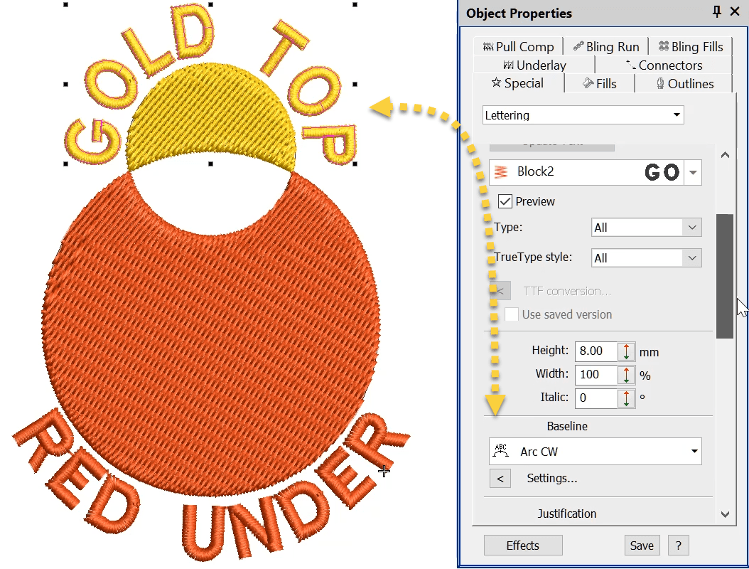 How do I create lettering on a curved line? ARC CW or ARC CCW