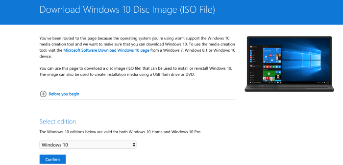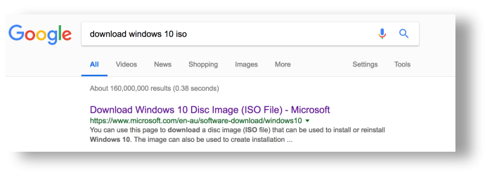 Download Windows 10 image (ISO File) from the Microsoft web page, if you are unsure, just Goggle it and chose the one from microsoft.com, this is the link: https://www.microsoft.com/en-au/software-download/windows10ISO.
