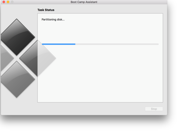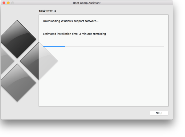 The installation process will take between 25 minutes to an hour depending on your internet connection and your Mac hardware, the Assistant will install the Windows Support Software, then it will partition your hard drive, install Windows 10 for you and finally install the Boot Camp tools needed to run Windows properly.