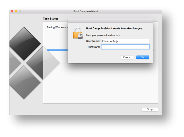 Before installing Windows 10, Boot Camp will ask you for your password.