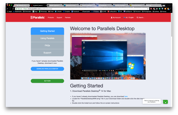 At the time of this blog, the latest version was 14. Parallels offer a 15 days full trial in case you need to test it before hand. Once you have download click on the parallels.dmg app and follow the instructions: