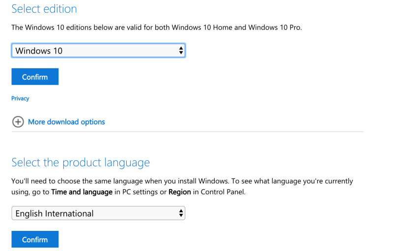- In ‘Editions’ please choose Windows 10, and;