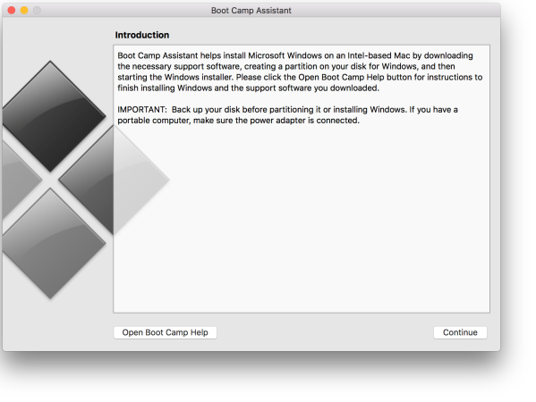 Once you are on the Boot Camp App, click on Continue.