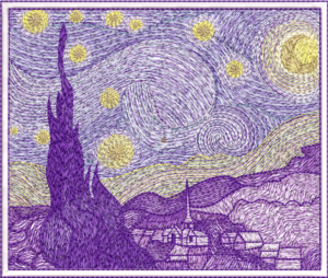 I have added a zipped .emb file of the “Birds at Sunset”, with my compliments. Enjoy and please comment back here after you have stitched this design.
