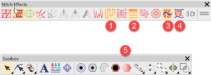 Once you add these elements to your software the shortcut icons will be found in the Stitch Effects and the main Toolbar.
