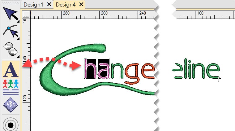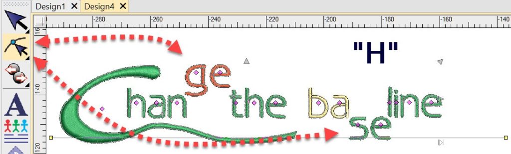 The Baseline is a property of a lettering object and may be changed at any time, even after the object has been created. The Baseline is one of the great benefits of the Embroidery Studio lettering system and should be preserved.