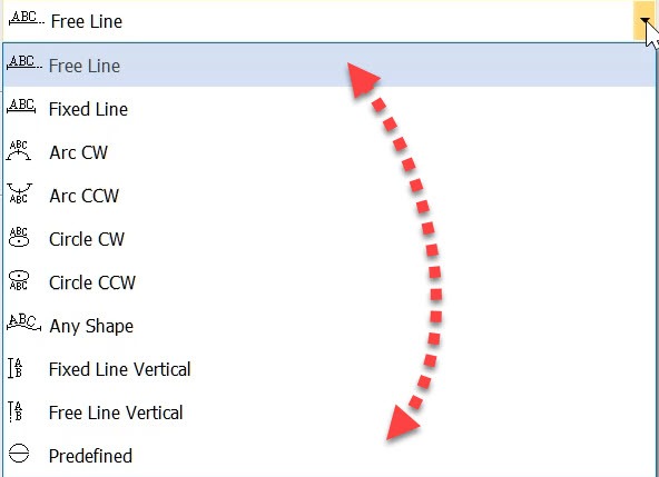 To change the baseline select the lettering object and select an alternative baseline from the Property Box.